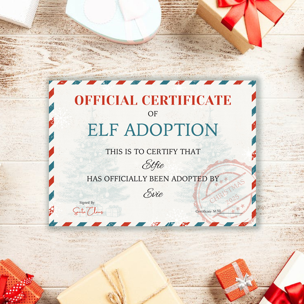 Each Personalised elf adoption certificate is approximately A4 Size and is printed onto card.